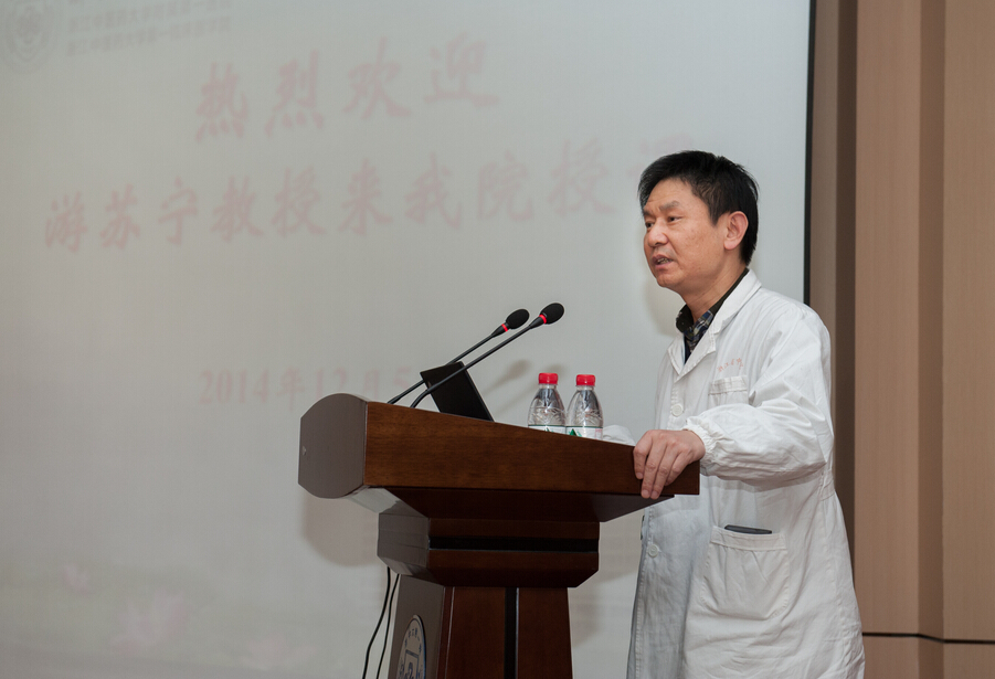 在讲座开始前,医院院长吕宾对游苏宁教授作了介绍并回顾他了上一次来院时结下的友谊。游教授还分享了当年他为医院建院八十周年时的题词:传承儒医文化,治病救人逾耄耋求索不止;恪守公立精神,救死扶伤扶伤近百年矢志不渝。游教授的才华与真诚获得了满堂的喝彩,讲座在愉快的氛围中拉开了帷幕。