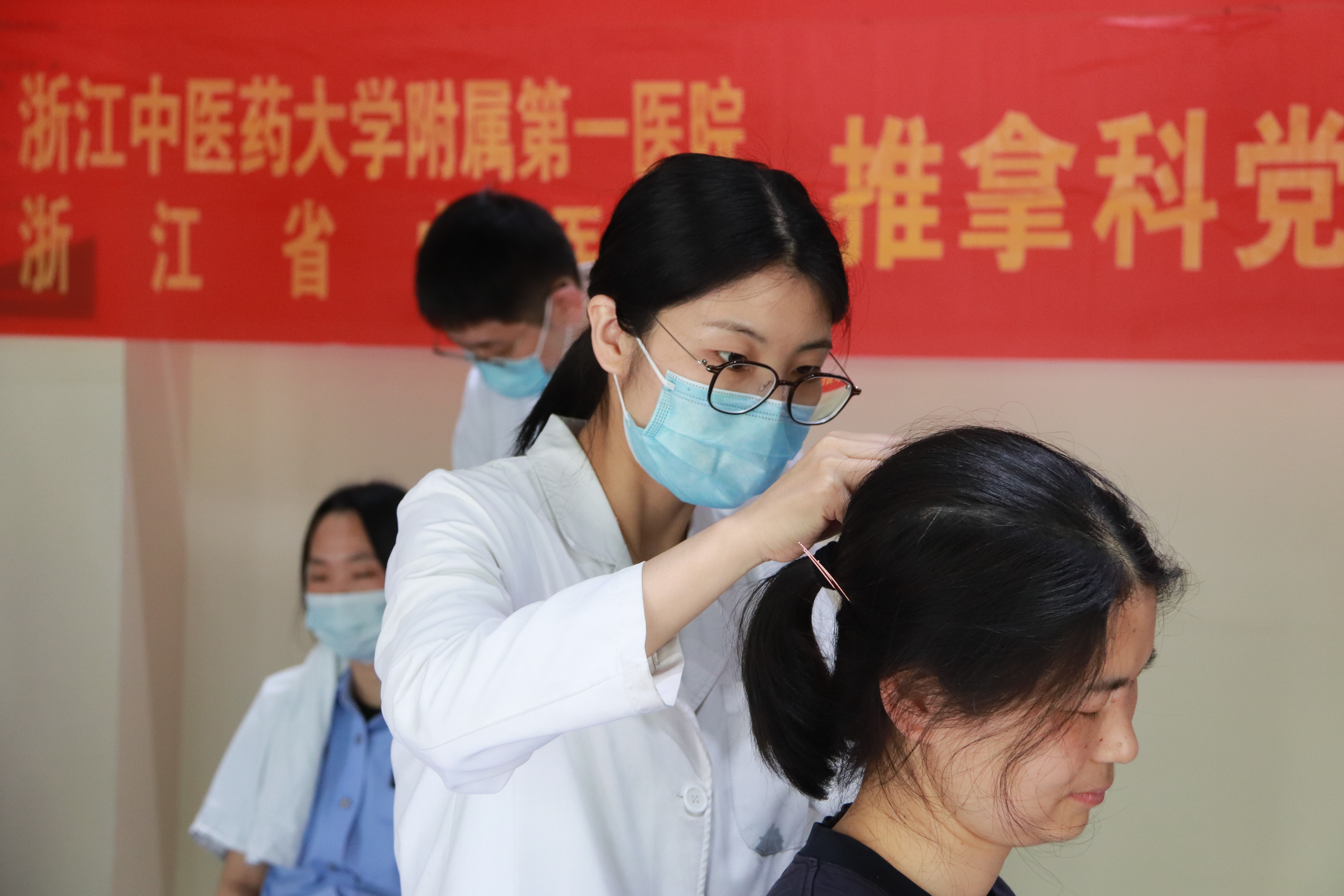 5月23日,浙江中医药大学附属第一医院推拿科党支部、全科医学科党支部一行10人联合走进德清浙江省女子戒毒所开展主题教育并举行“忆初心 讲党性 送温暖”义诊活动。