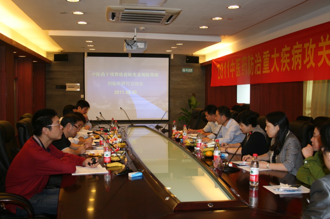会上,省中管局对中医药防治重大疾病攻关计划项目的立项背景及意义作了介绍。徐伟伟局长强调,要通过“中医药干预胃癌前病变及预防胃癌的临床研究”项目的实施,整合全省中医、中西医结合的优势资源,促进课题组多家单位之间的协作,进一步完善合作机制,确保中医药防治重大疾病的关键技术及方案联合攻关取得预期成果。