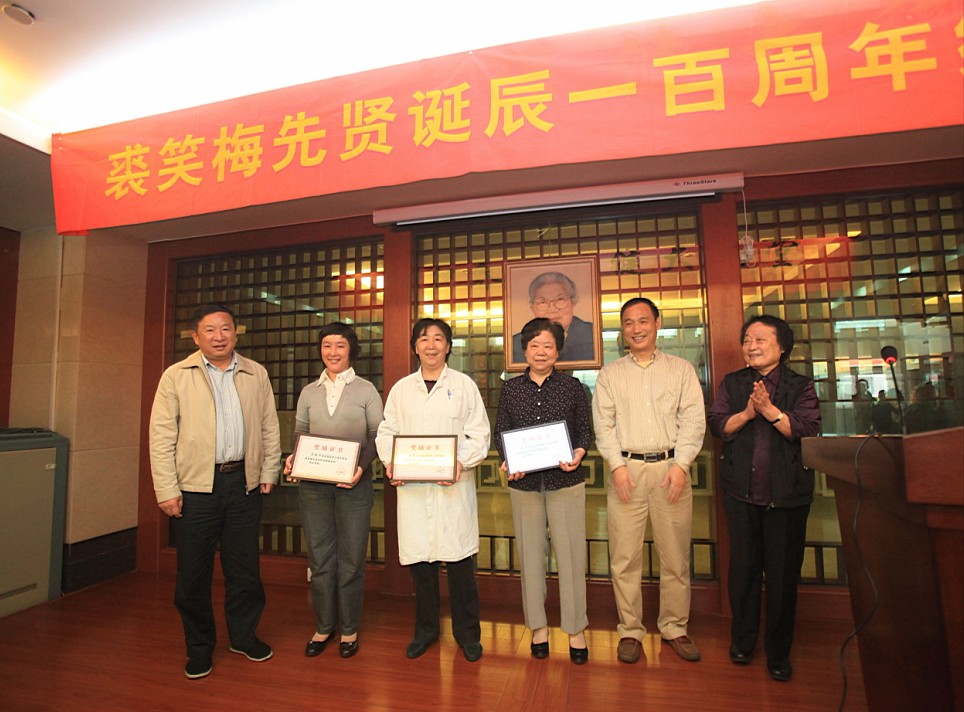 10月8日,我院隆重举行了国家级名中医裘笑梅先贤诞辰一百周年纪念暨裘笑梅中医妇科发展基金颁奖大会。浙江省卫生厅副厅长张平,浙江中医药大学副校长李俊伟,浙江省名中医研究院院长葛琳仪,浙江省中医药学会会长肖鲁伟、副秘书长王晓鸣,浙江中医药大学医管处副处长陈华以及我院党委书记曹毅、副院长沈敏鹤、裘华森、党委副书记黄平等领导出席了大会。浙江省新华医院、浙江省立同德医院、浙江省中山医院、杭州市中医院、平湖市中医院等数十家兄弟单位参加了此次纪念活动。