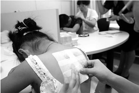 每到三伏天,省中医院的“冬病夏治”专科门诊,迎来不少小伢儿。背上穴位贴上6颗药膏,可以治疗咳嗽、哮喘、过敏等疾病。