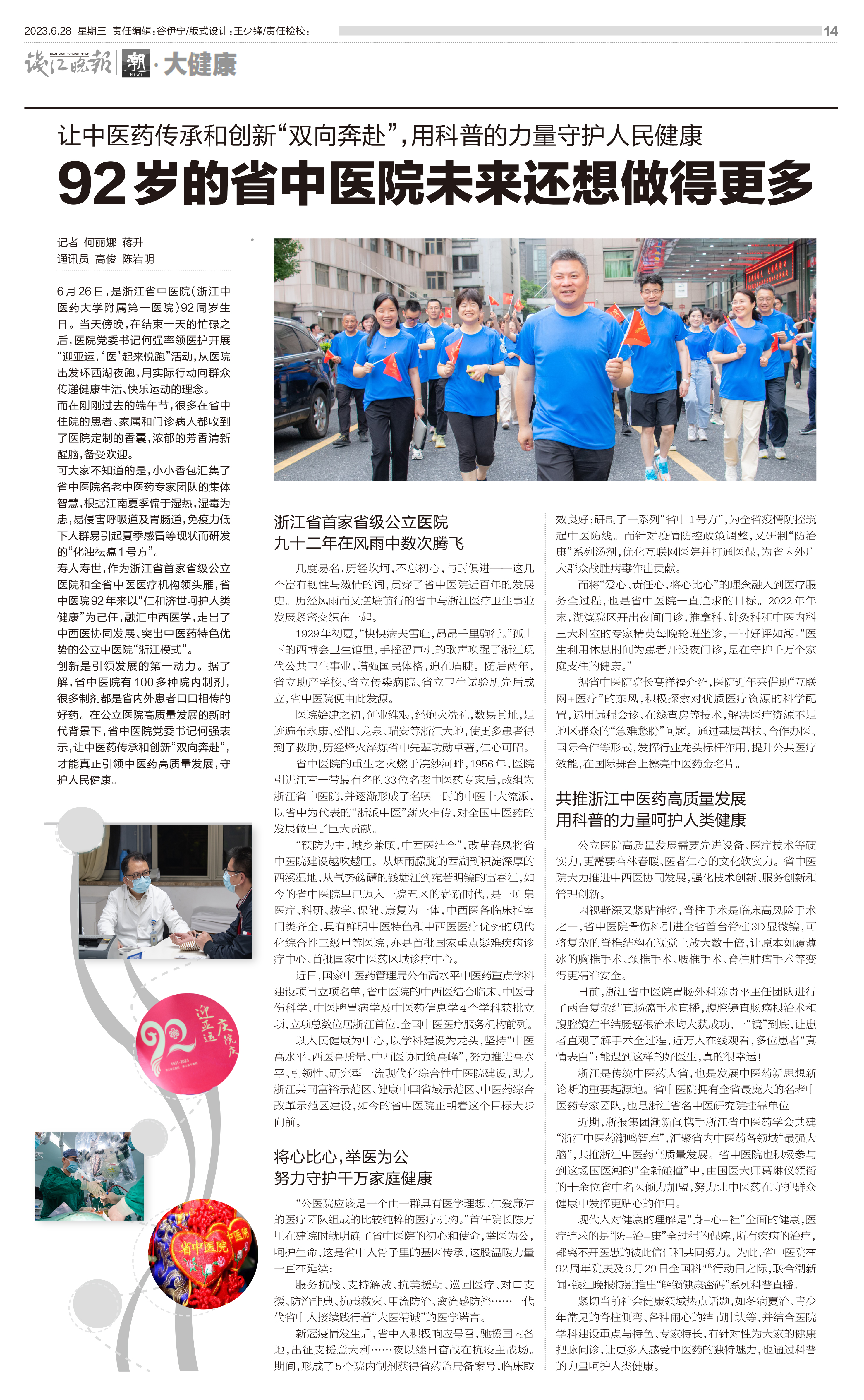 【钱江晚报】92岁的省中医院未来还想做得更多