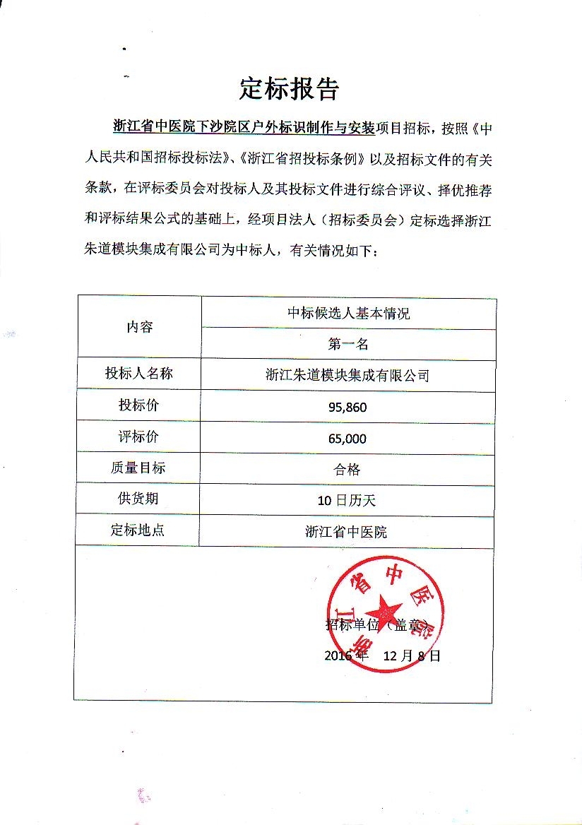 浙江省中医院下沙院区户外标识制作与安装定标报告