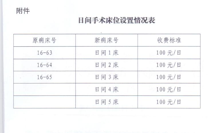 关于湖滨院区日间手术病房特需床位收费事宜的通知