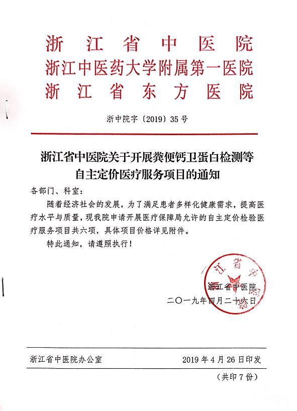 关于开展粪便钙卫蛋白检测等自主定价医疗服务项目的通知