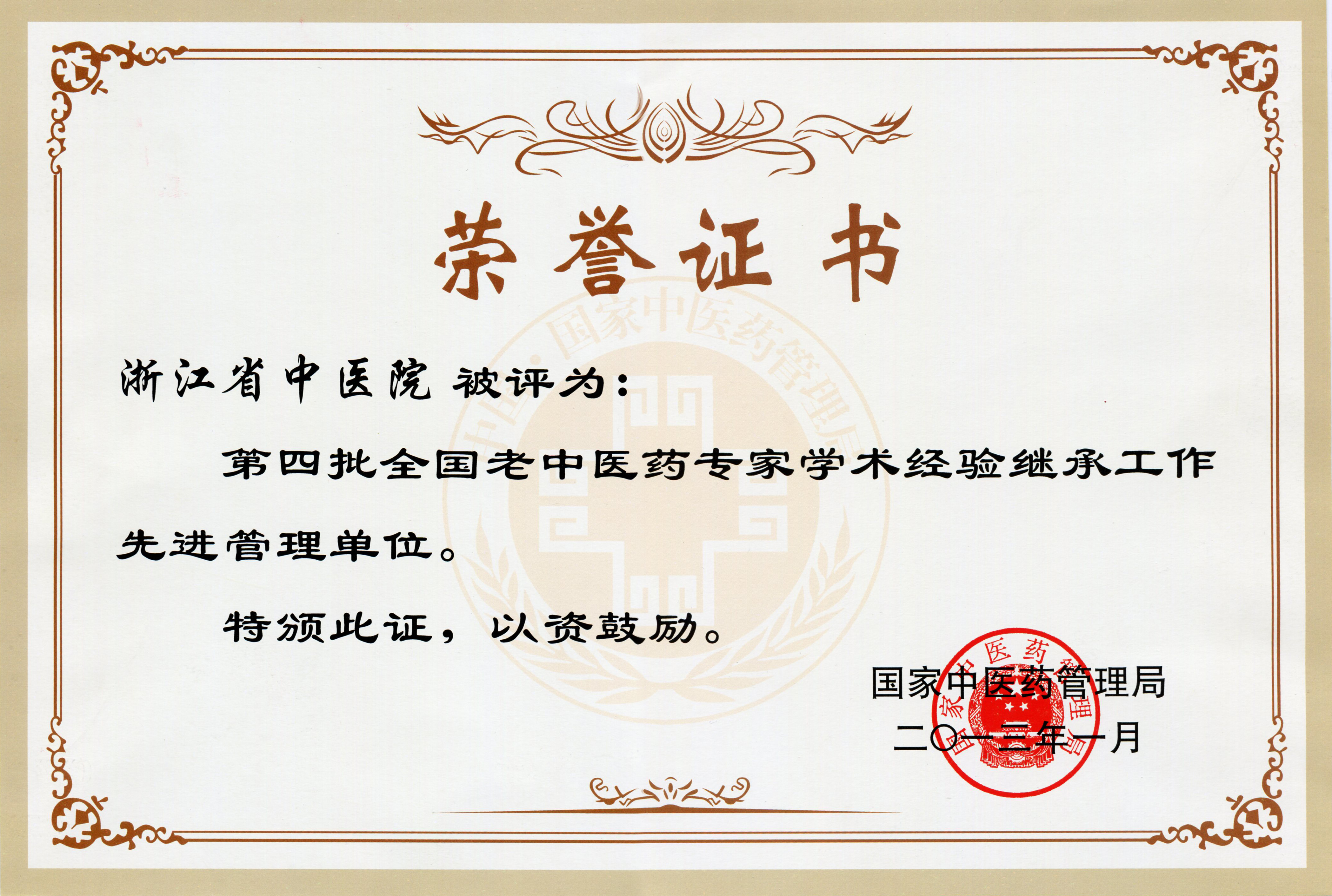 我院荣获“全国老中医药专家学术经验继承工作先进管理单位”