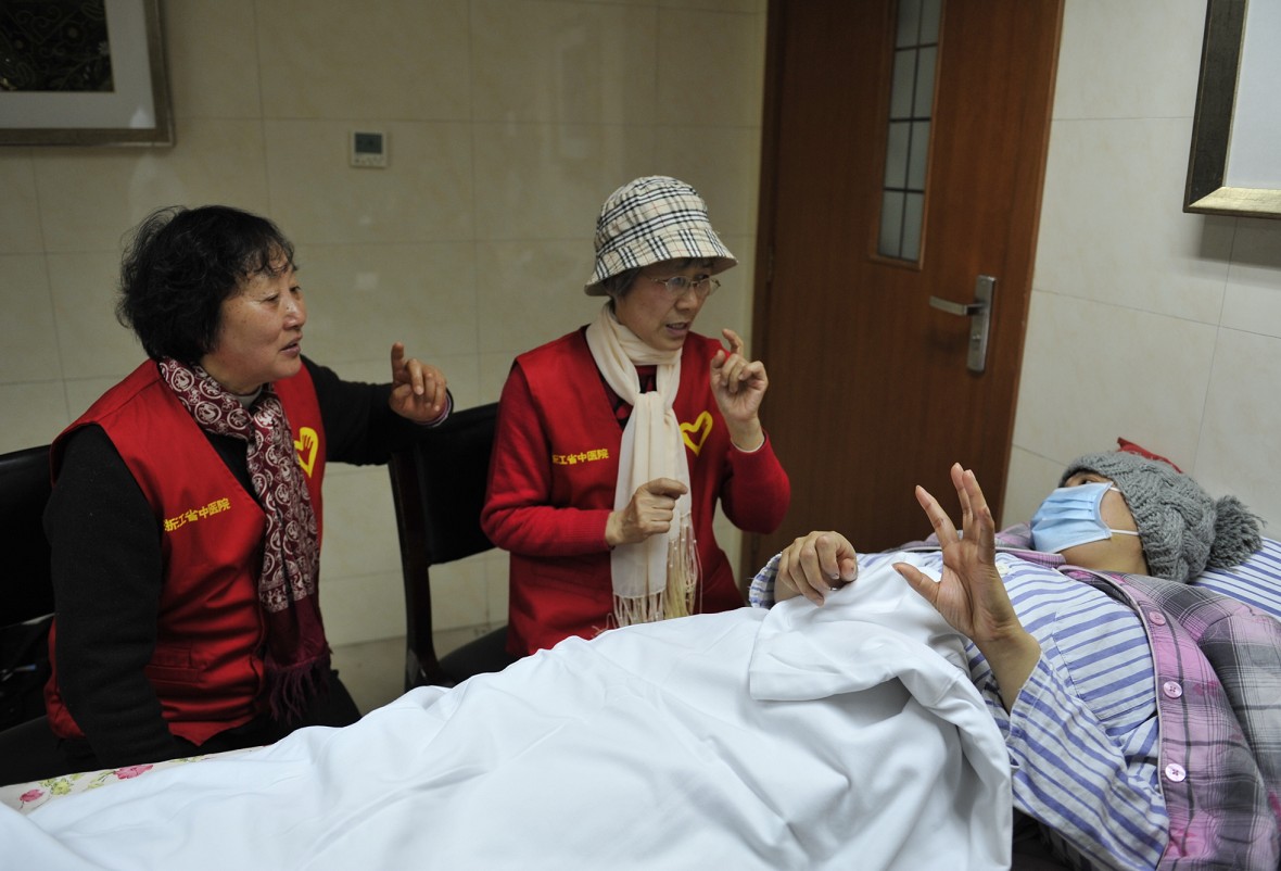培训结束后,70岁的马大姐和59岁的蒋大姐,率先进入病房开展服务,她们既可以为无家属照顾的卧床病人服务,也能进行简单的床边陪护、陪送检查以及简单的穴位按摩等中医护理,而且还能为慢性重症患者、术前患者进行心理疏导,利用自身的相关治疗经验,与患者进行设身处地的沟通,缓解患者的紧张、绝望、恐惧等负面情绪,树立战胜疾病的信心。