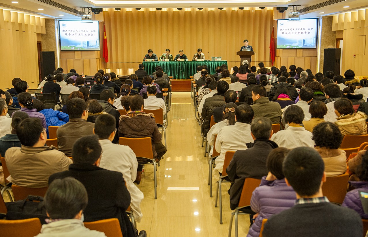 1月9日,医院领导班子述职汇报会在湖滨院区学术报告厅召开。浙江中医药大学党委副书记熊耀康,纪委副书记陈列荣、组织部副部长朱建良出席了大会,医院中层干部、职(教)代会代表、统战团体特邀代表参加了会议。