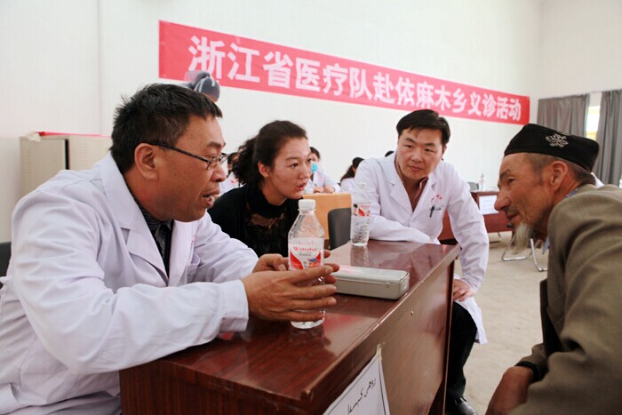 5月中旬,浙江省援疆指挥部组织了省级医疗队赴阿克苏地区乌什县的义诊活动。2014年春节期间这里曾发生过公共安全事件,对于来这里义诊我们其实都颇感惴惴。与我们的思绪相反,这里的少数民族兄弟姐妹淳朴、热情、好客,让我们一行人不再有来时的顾虑,也和他们更加亲近。尽管语言不通,但通过眼神,我们也能感受到他们的真诚、和善。短短4个小时的时间,我们一行人诊治了100多位患者,免费发放了2000余元的药品。这里的基层医务工作者同样值得我们学习。依麻木乡,这个国家级贫困县的一个乡镇,9名医生需要一专多能,承担整个乡镇的医疗卫生、疾病预防工作。可以说他们就是联系这个地区各族群众的纽带,透过他们传递出来的爱沐泽了少数民族兄弟。有了他们传递的这份爱,相信美丽的塔里木盆地终会驱散暴恐的梦魇,让各族群众生活更加祥和。从他们身上我已经看到什么叫做爱祖国、爱人民。这,是我之前二三十年来所不曾体会的。