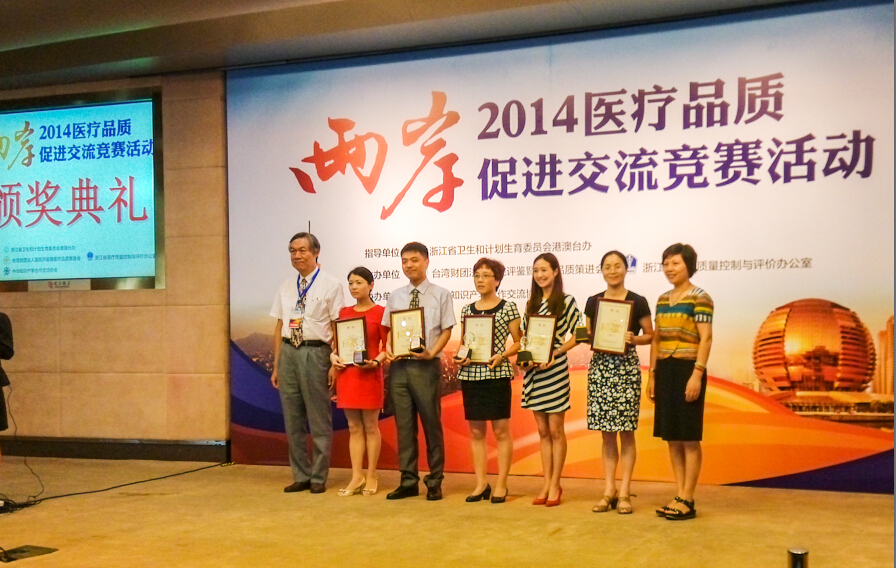 9月2日,由浙江省质量控制和评价办公室和台湾财团法人医院评鉴暨医疗品质策进会联合主办的历时三个月的“2014年两岸医疗品质促进交流暨竞赛活动”在杭落下帷幕。我院院感科“降低ICU环境物表多重耐药菌检出率——环境物表清洁消毒持续质量改进”的主题改善专案在9月1日-2日的现场发表会上表现出色,荣获“佳作”奖。