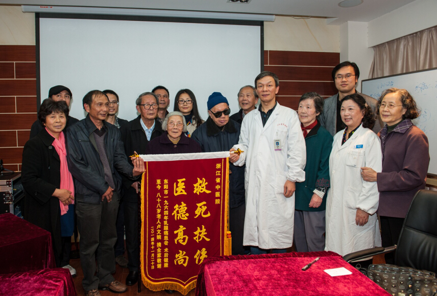一晃,半个世纪弹指而过,卢女士和相持半个多世纪的爱人马先生早已是满头银发,儿孙绕前。四世同堂的俩老时常在儿孙面前感念当年在浙江省中医院治疗过、帮助过她的医护人员们。11月24日,经过医院和家属的沟通、联络,现年88岁的卢文婉老人在儿孙的陪同下,来到了浙江省中医院,见到了当年的部分医护人员,遗憾的是当年的主刀医师林式娴已经于2013年末过世了,而当年的副院长王水林也已是98岁高龄,林医生的同事、好友等医护人员也都已是白发苍苍的老人。
