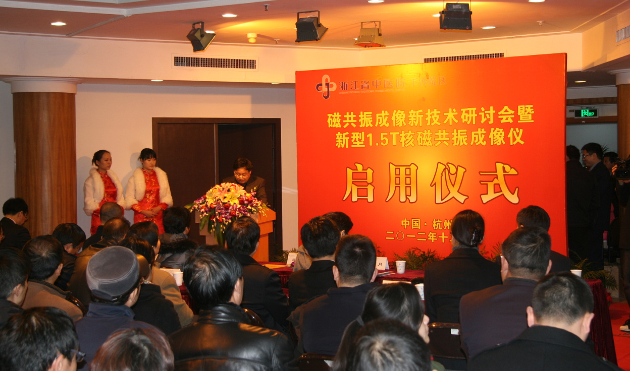 12月18日,浙江省中医院下沙院区内彩球飘飘,人头攒动,嘉宾云集,“磁共振成像新技术研讨会暨新型1.5T核磁共振成像仪启用仪式” 在院区多功能厅隆重举行。杭州经济技术开发区党工委副书记邵立春,社发局局长袁月、市卫生局开发区分局局长吴波,各有关部门领导、开发区内高校、企事业单位、兄弟单位嘉宾、省内外医学影像专家,医院副院长、下沙院区执行院长毛威、副院长许茂盛、下沙院区副院长叶建江、党总支副书记周莹及中层干部等100余人出席了启用仪式。