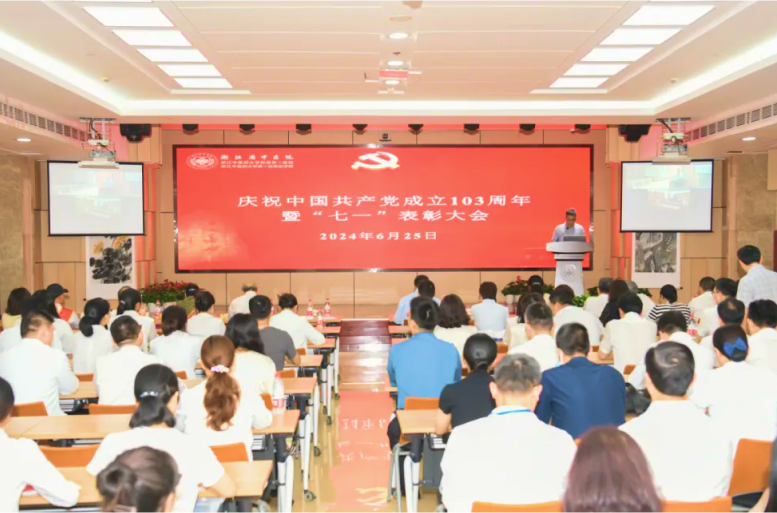 6月25日下午,医院隆重举行庆祝中国共产党成立103周年暨“七一”表彰大会,共同向伟大的党献上最真挚的祝福。医院(学院)党委书记何强,党委副书记、院长高祥福等党政班子成员、全体中层干部、各党支部书记、党员代表现场参加会议,各支部还通过观看直播形式参会。大会由院党委副书记陈智能主持。