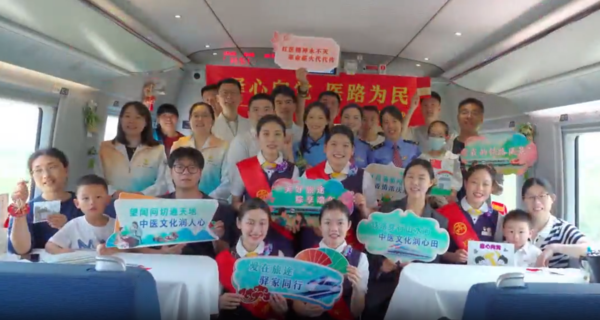 浙江省中医院与杭州客运段高铁四车队开展“驿心向党,医路为民”主题党建联建暨高铁义诊活动,来自全科医学科、推拿科、中医护理团队一行来到这趟串联红色地标与壮美山河的G1549次列车上,向南来北往的旅客提供健康咨询、把脉、推拿及耳穴贴压中医适宜技术操作体验。