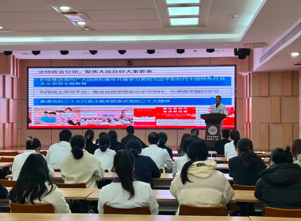 春正逢盛世,奋斗恰如其时。12月26日,共青团浙江中医药大学附属第一医院委员会2024年年终总结会议在湖滨院区八楼学术报告厅顺利召开。本次会议听取了共青团浙江中医药大学附属第一医院委员会工作报告;对优秀团员、优秀团干部、先进团支部等先进荣誉进行颁奖。本次大会由团委书记杨洞洞主持。