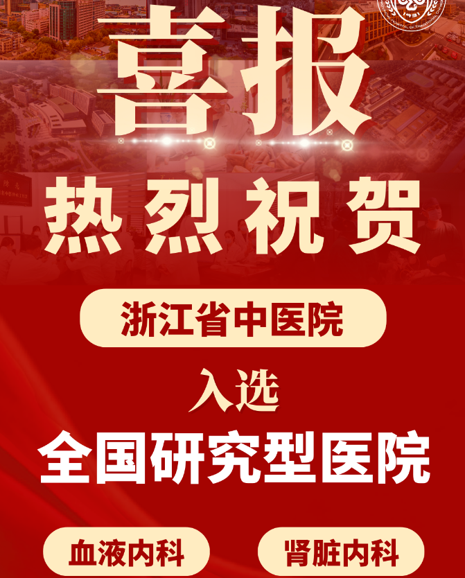 我院学科建设以国内一流医院建设为标杆,拥有各级各类重点学科52个,其中国家中医药管理局重点学科13个,浙江省中医药管理局重点学科36个,浙江省卫生厅医学重点学科1个,浙江省教育厅A类一流学科1个,浙江省教育厅重点学科1个。我院是“十四五”浙江省登峰学科中医学学科、“十四五”浙江省优势特色学科中西医结合学科重点建设单位。按照“重点学科引领、优势学科发展、扶持学科提质”的学科建设思路,我院推出一系列学科高质量发展助推计划,在提升学术影响力和研究型学科建设中成效显著。我院血液病学科进入2023年度中医医院学科(专科)学术影响力榜单第一,并有7个学科入围全国榜单十强。血液学科和肾病内科入选2023、2024年度研究型学科;骨伤科入选2024年度研究型学科。