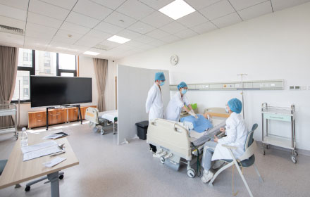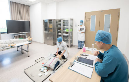 三个平台:临床基本技能训练、中西医专业技能训练和综合技能训练。中心拥有一批先进的设备和模型,能满足内科、外科、儿科、妇产科、急救、护理等各模块教学的需求。中心设备总值1250万元,设备完好率96%以上。仪器设备利用率较高,且逐年上升。同时中心拥有一套腹腔镜操作模拟系统、内窥镜模拟系统,能满足腹腔镜、内窥镜专科医生的培训;组建了专业的中医SP团队,致力于开发优质中医临床案例,拥有一套脉诊仪、推拿、拔链等模拟智慧系统,积极开展中医临床模拟教学,钱塘院区模拟中心建立了信息化教学管理和标准化 OSCE 考核系统,设有10个 OSCE 考站,实现教学管理与培训、考核、评价全程信息化,有力地保障了教学质量和效果。为了促进教学互动与问题解决能力的培养,中心还设立了PBL(Problem-BasedLearning)多功能教室,湖滨院区医学模拟中心安装先进考试系统的机房考试中心,为学员们提供了高效、便捷的在线学习与测评平台。