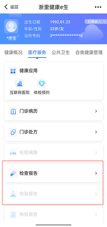 操作流程:浙里办APP“浙里健康e生→医疗服务→检查报告、检验报告